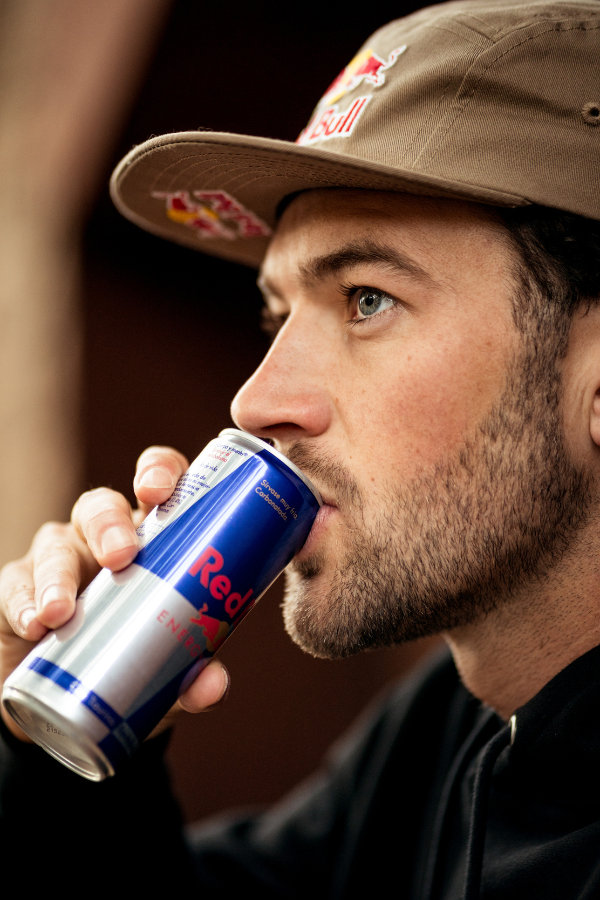 En fait, je me souviens avoir fait un sondage sur instagram demandant à ma communauté avec quelles marques ils aimeraient me voir m'associer. Environ 70 % des réponses concernaient la canette bleue et argentée de Redbull. Pourquoi ? Je suppose que c'est parce que nous aimons tous les deux repousser les limites, être un peu différents et prendre des risques. Avoir des ailes.